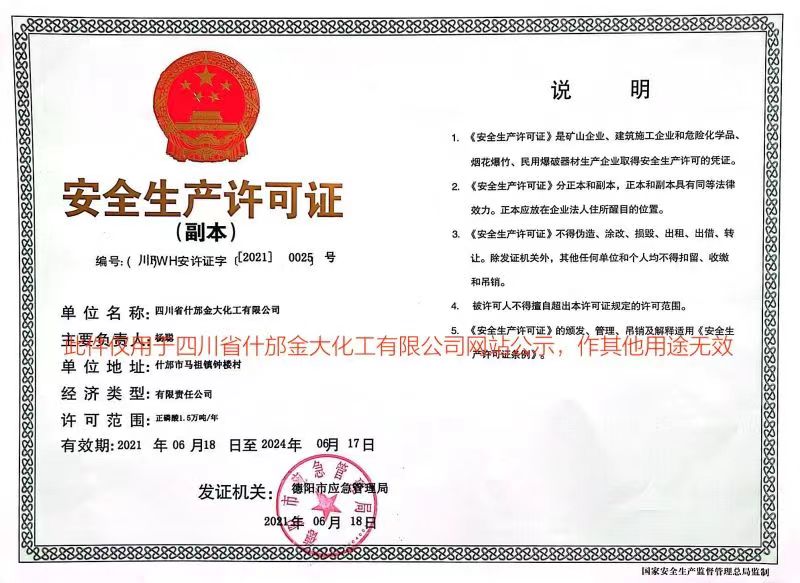 四川省什邡金大化工有限公司-是位于中國四川省的一家專業(yè)生產(chǎn)磷化工系列產(chǎn)品的廠家。所處地理位置資源豐富,交通便利,緊鄰成綿高速復(fù)線,距離兩路口火車站1000米。公司成立于1996年,多年來一直從事磷酸鹽的開發(fā)與生產(chǎn)。公司擁有職工65余人,其中各類工程技術(shù)人員20人,資產(chǎn)總額5000萬元,占地11000余平方米。
